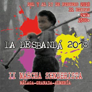 La marcha de la Desbandá 2018 es ahora, recién finalizada y ya vuelto a casa, una superposición de sensaciones difíciles de ordenar. Este era el segundo año en que se organizaba la marcha conmemorativa sobre el itinerario completo Málaga-Almería recorrido por la población que huía, a principios de febrero de 1937, de la entrada de las tropas franquistas en aquella ciudad. En esta ocasión hemos participado entre 60 y 300 personas, según los días, y ha sido un éxito tanto organizativo como de contenido e impacto, gracias al esfuerzo de mucha gente involucrada, en particular de sus organizadores, el Club Senderista La Desbandá.