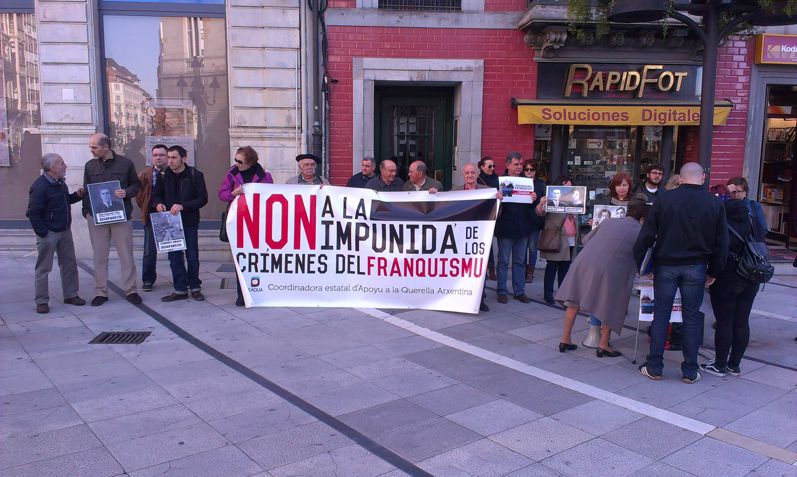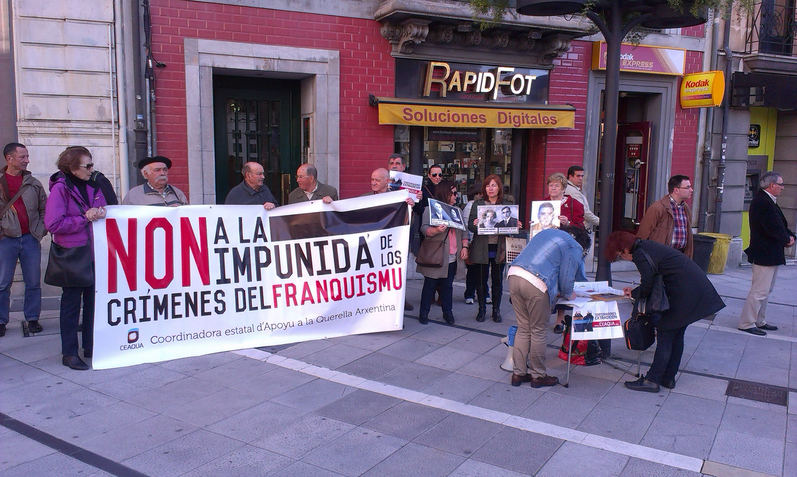 Desde Asturias seguimos trabajando. El día 25 de abril tenemos cita en el Consulado de Argentina en Madrid para presentar siete denuncias por casos ocurridos en Asturias que pueden llevar a la imputación de más torturadores. Se unen a la ya querella ya presentada por Gerardo Iglesias que confiamos que se traduzca en la imputación por torturas del policía Pascual Honrado de la Fuente.