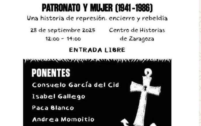 El domingo 28 de septiembre a las 12 horas se realizará un acto en el Centro de Historias de Zaragoza donde se hablará del Patronato de la mujer y cómo actuaba y ha afectado a las mujeres que sufrieron las prácticas llevadas a cabo en el Patronato desde final de la guerra hasta ya entrada la democracia.