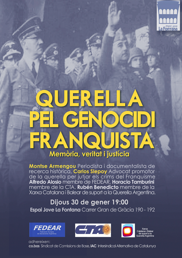 Cartel Conferencia Querella en Barcelona 30.01.2014