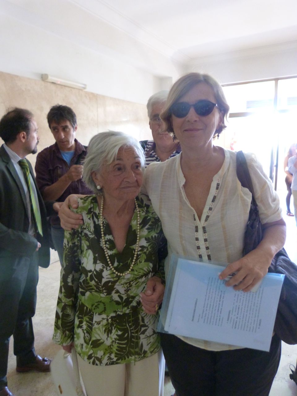 “Declara en primer lugar Ascensión Mendieta, durante bastante tiempo, casi dos horas.La impresión es que el relato de su caso ha conmocionado al personal del Juzgado. Con una enorme sencillez nos explica al salir que está muy contenta, que cree que se hará justicia y que va a recuperar los huesos de su padre. José Luis Galán nos enseña emocionado la trascripción de sus declaración, la referencia al trabajo esclavo de su padre y la enorme satisfacción por haber cumplido con el principal objetivo de su viaje. Tonia Oliver nos comenta su satisfacción por poder contar tanto su caso personal como la querella interpuesta por su asociación referida a más de 1700 personas asesinadas en Mallorca. Nos comenta su emoción por el abrazo que se dieron ella y la secretaria que le tomó la declaración, María José, al terminar su relato.”