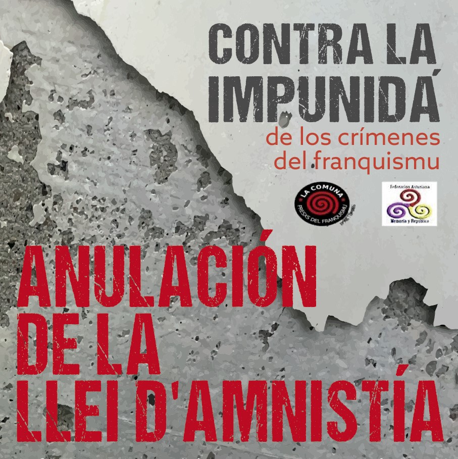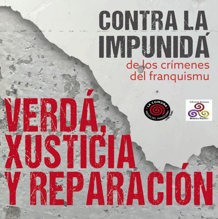 Les entidaes que soscribimos somos una parte pequeña del movimientu popular y democráticu, pero avalen les nuestres posiciones el nuestru compromisu d’años llargos de trabayu p’acabar cola impunidá de los crímenes franquistes, que ye tamién una forma d’evitar que vuelvan producise crímenes asemeyaos. Vivimos momentos onde se ta debatiendo una Llei de Memoria Democrática a nivel del Estáu, y ye una bona oportunidá pa que seya un instrumentu normativu capaz a ayudar a educar a les nuestres xeneraciones moces en valores cívicos democráticos y que llevante una muria de contención a los intentos involucionistes de los sectores más reaccionarios de la nuestra sociedá. Precisamos una llei que respuenda a los valores de ¡VERDÁ, XUSTICIA Y REPARACION, CON GARANTÍES DE NON REPETICION!, qu’equipare en derechos a les víctimes del Franquismu, coles víctimes del terrorismu, porque nun hubo n’España organización terrorista más dañible que’l réxime de Franco.