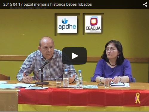 Ponentes: Soledad Luque (Asociación “Todos los niños robados son también mis niños” y Jacinto Lara, Presidente de la Asociación Pro Derechos Humanos de España y Abogado de la CeaQua.