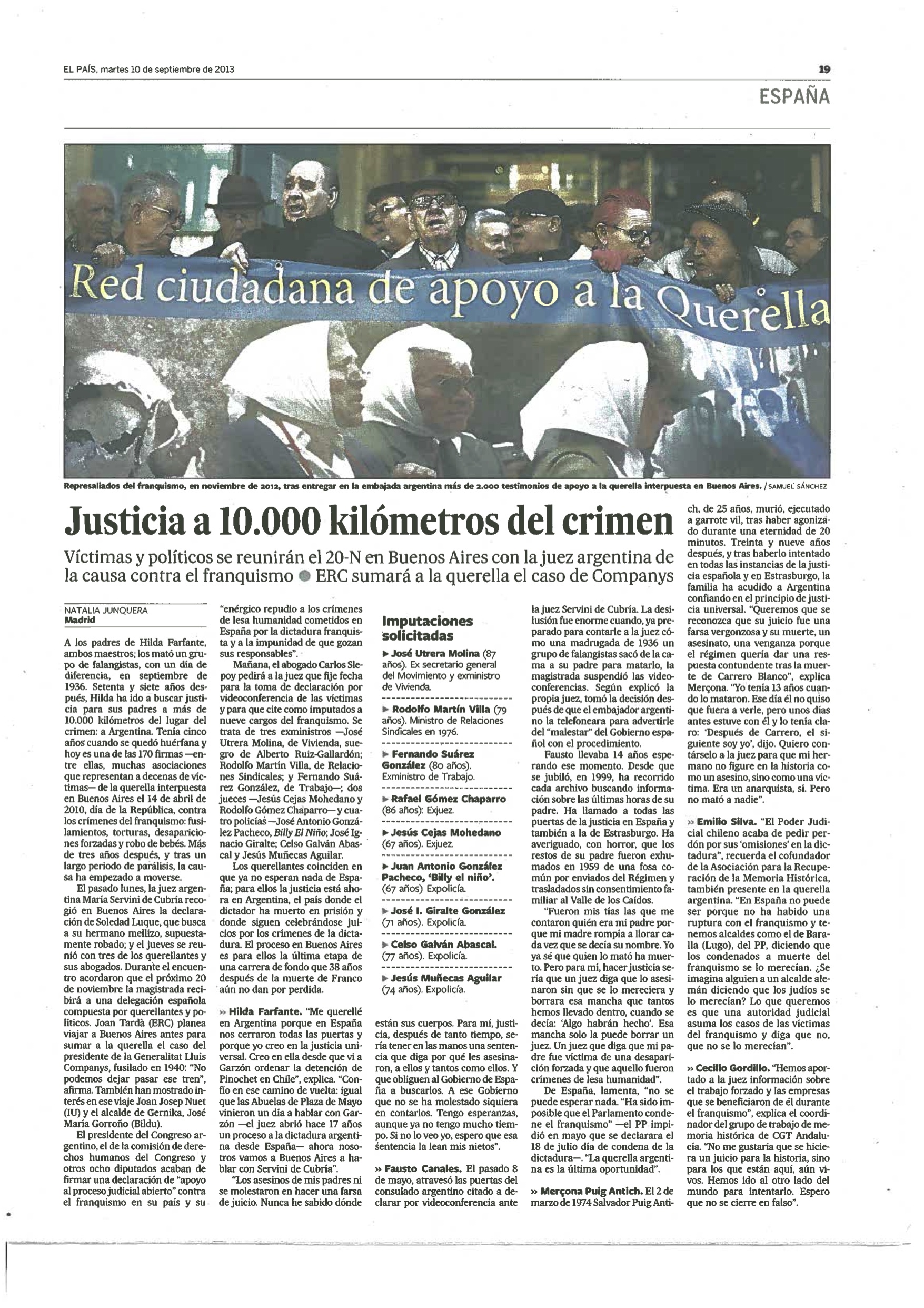 Justicia a 10.000 kilómetros del crimen Publicado por: CeAqua 11 septiembre, 2013 FacebookTwitteremailEl Pais 9 de sept 2013 FacebookTwitteremailTe puede interesar:No hay temas relacionados