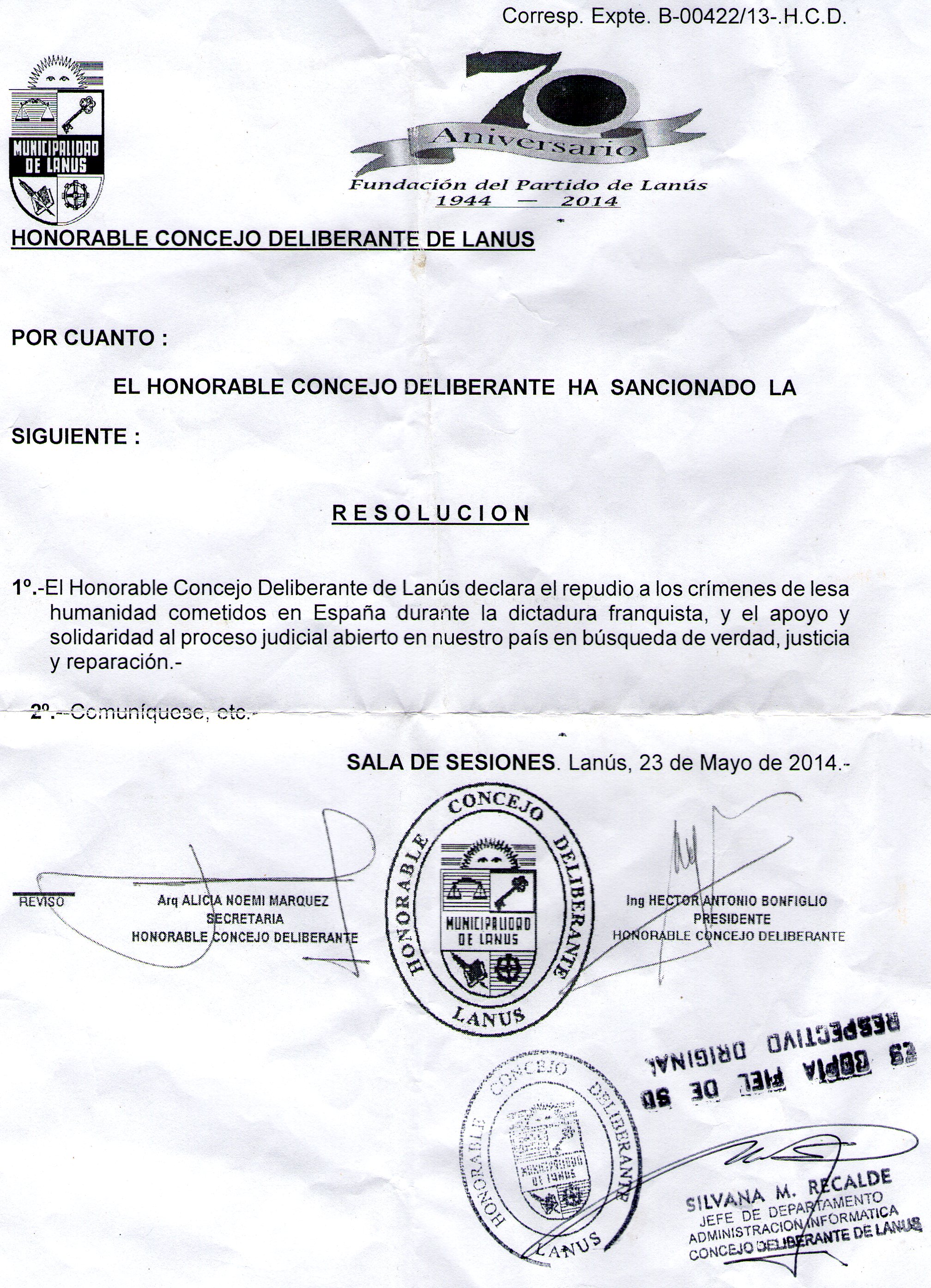 Lanús (Argentina) suma su apoyo a la Querella