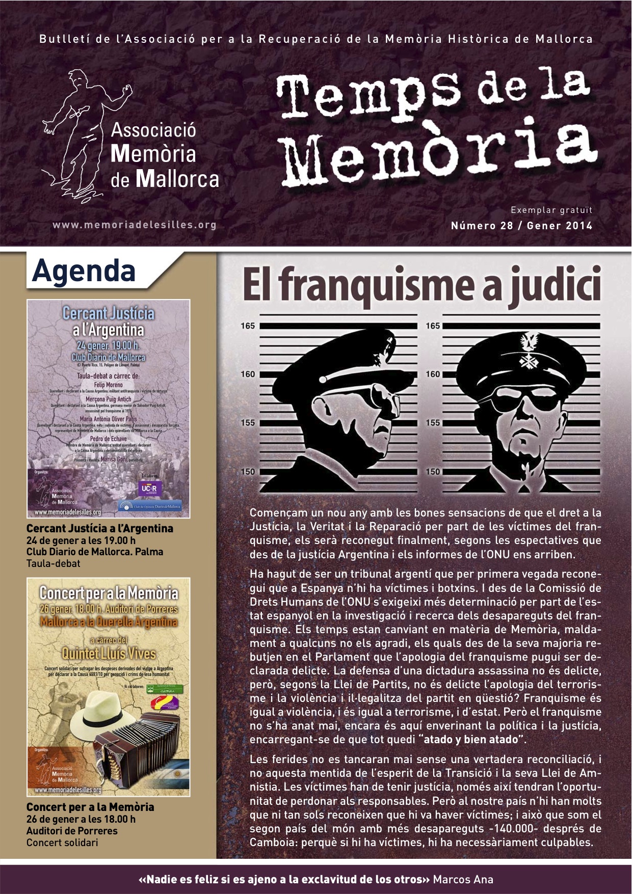 Nuevo número de la revista “Temps de la Memòria” DEBATES:Associació Memòria de Mallorca Publicado por: CeAqua 21 enero, 2014 FacebookTwitteremailPinchar aqui para leer en PDF la Revista Temps de la Memòria FacebookTwitteremailTe puede interesar:No hay temas relacionados