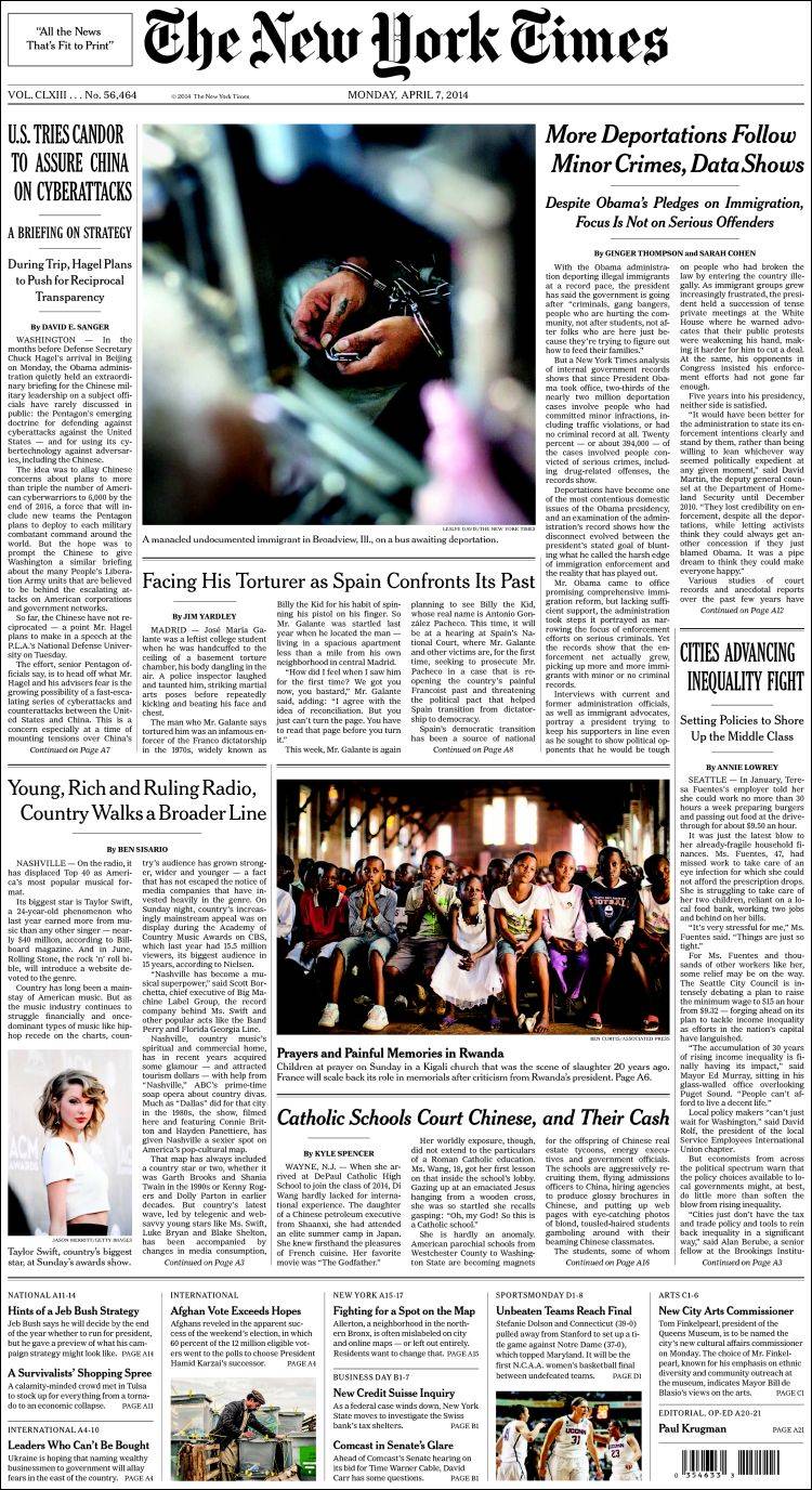 Portada en The New York Times DEBATES:Chato Galante Publicado por: CeAqua 8 abril, 2014 FacebookTwitteremailPortada en la edición de papel del diario estadounidense The New York Times de ayer lunes 7 de abril, con la noticia sobre la impunidad del franquismo y la entrevista a Chato Galante “Facing his torturer as Spain confronts its past”. FacebookTwitteremailTe puede interesar:Acto contra a impunidade San Simón 2019La Querella Argentina en la televisión francesa.Informe de la jornada de CeAQUA en el Parlamento europeoCeAQUA en el Parlamento Europeo para denunciar la impunidad del franquismoLa Tuerka: memoria entre costurasTVE 1: Una juez argentina ordena detener a los exministros Martín Villa y Utrera Molina por crímenes del franquismoVideos de la 27ª sesión del Consejo de DDHH en Ginebra.Informe sobre las actividades realizadas en Ginebra del 10 al 12 de septiembre de 2014. José María Chato Galante: “Si se reconoce que somos víctimas, también se reconocerá que hubo culpables”Acto en Ávila sobre la Querella Argentina