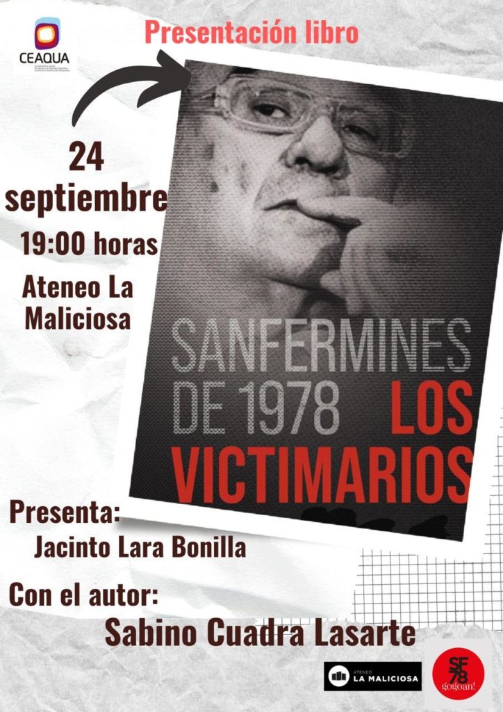El próximo miércoles 24 de septiembre a las 19 horas, en el Ateneo La Maliciosa (Calle Peñuelas, 12, Madrid), Sabino Cuadra presentará su libro sobre los hechos ocurridos en los Sanfermines de 1978 dónde fue asesinado Germán Rodríguez y heridas cuentos de personas por la actuación de la policía a cargo de Martín Villa.