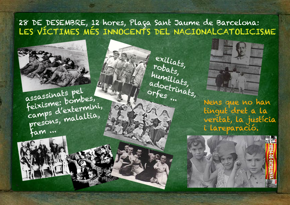Entre els companys que ens concentrem el darrer dissabte de cada mes, des de fa més de quatre anys, subjectant una pancarta que demana veritat, justícia i reparació, hi ha víctimes innocents entre les més innocents. Nenes i nens llavors, ara joves que porten dècades i dècades suportant una història oficial que ha ignorat el seu patiment.