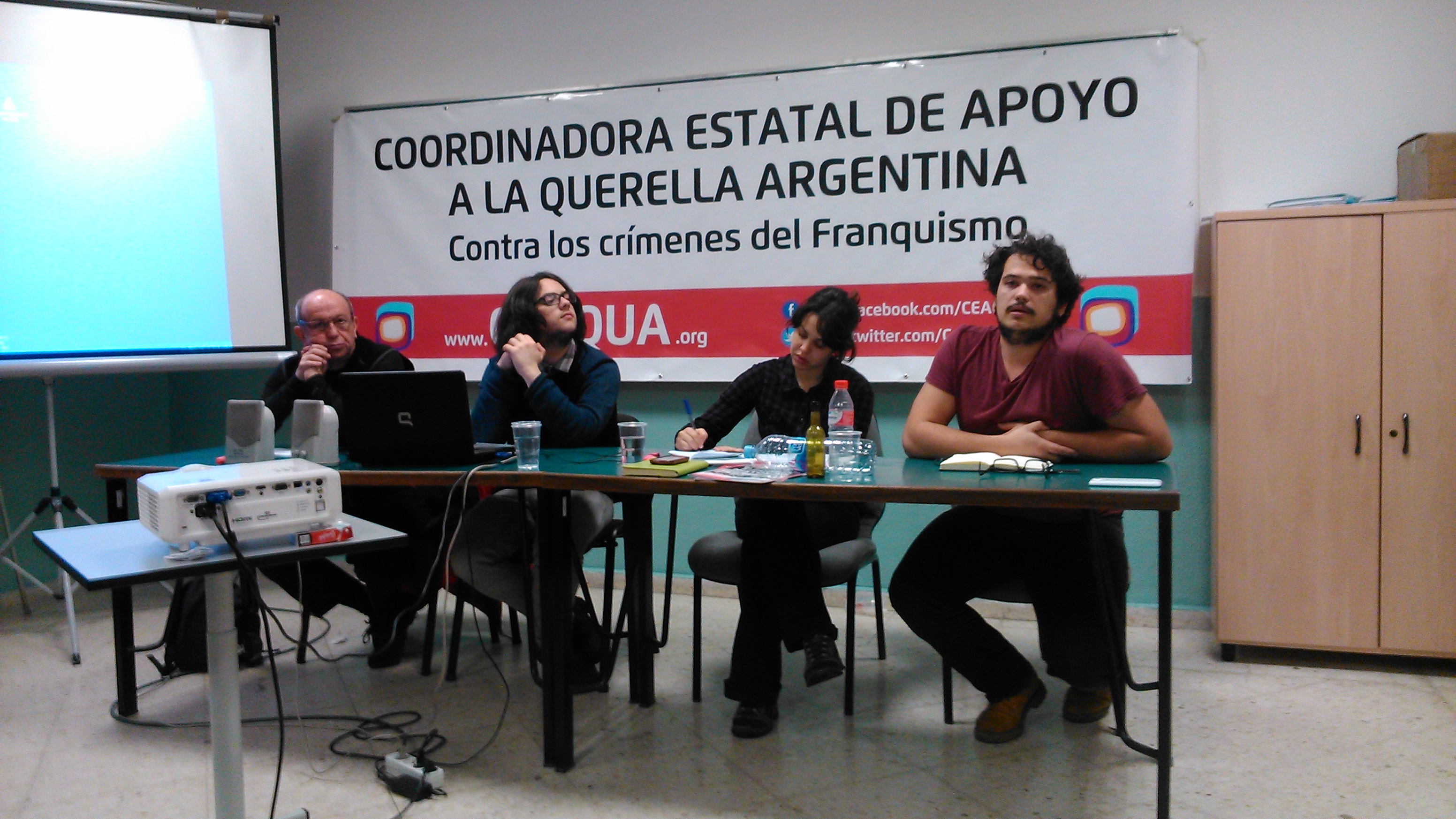 La coordinadora de apoyo a la querella argentina celebraba ayer una conferencia con miembros del movimiento estudiantil cuando miembros de la organización Liga Joven interrumpieron el acto. La asociación de expresos de la dictadura ‘La Comuna’ estudia emprender acciones legales. Tres asaltantes fueron identificados por la Policía.