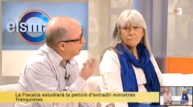 Mercè Puig Antich, germana d’en Salvador, i Felipe Moreno, representant de la Xarxa Catalana i Balear de Suport a la Querella Argentina contra els crims del franquisme a Els Matins de TV3. El company Juan amb la seva companya Paquita, querellants, obren pas a l’entrevista de la Mercè, en Felipe i un dels advocats de la querella, Carlos Slepoy.