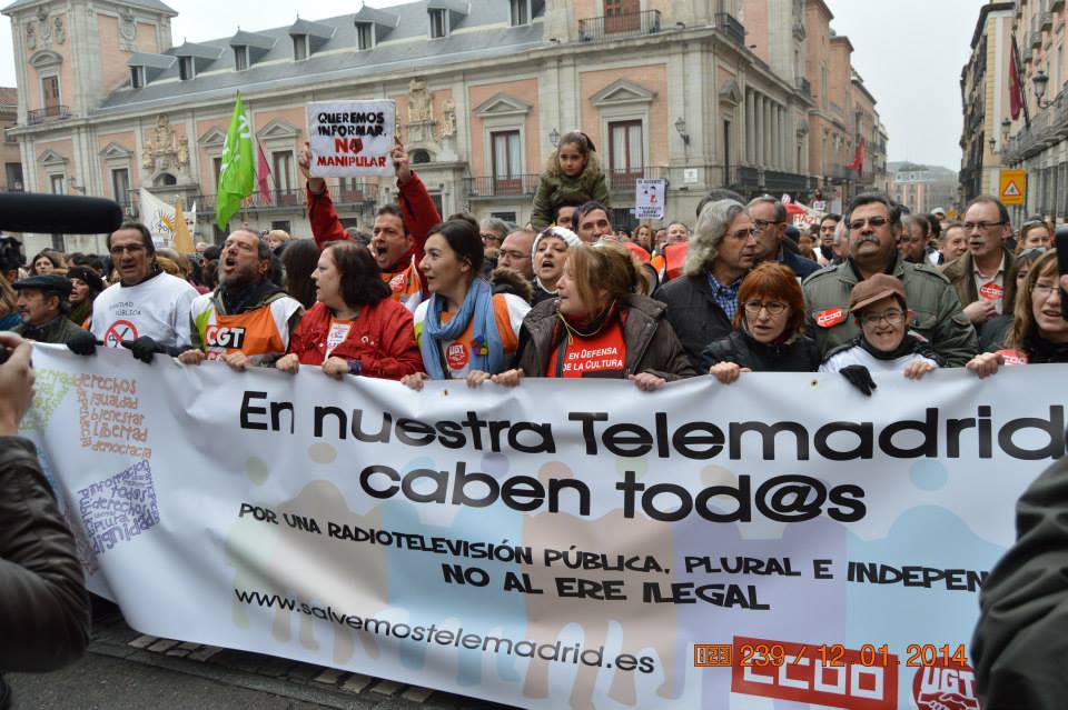 La Plataforma madrileña de la CeAQUA formó parte de la manifestación de los ex-trabajadores de Telemadrid, reclamando una televisión pública que garantice el acceso a la información y donde todos tengamos visibilidad.