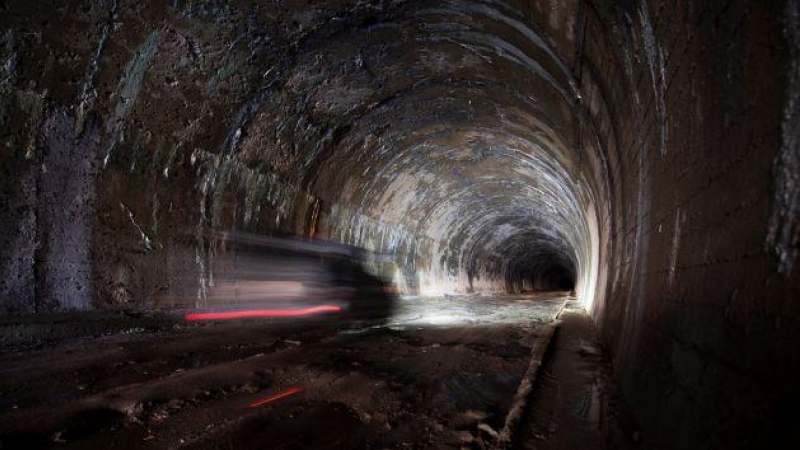 La idea era, ya dijimos, horadar la montaña. Entre Valdeporres y Yera. Las Merindades burgalesa y el valle cántabro del Pas. Un agujero casi recto, pequeña curva al final. O al principio, depende de por dónde usted comience el camino. Anchura de ocho metros, altura de seis y medio. Una auténtica autopista, perfectamente preparada para dos vías, para que los trenes pudieran cruzarse, estruendo sobre silencio, en la oscuridad que no cesa. Casi siete kilómetros de longitud (el dato oficial nos habla de 6.976 metros). Durante mucho tiempo será el túnel ferroviario más largo de España… solo que por allí jamás pasó ningún tren.